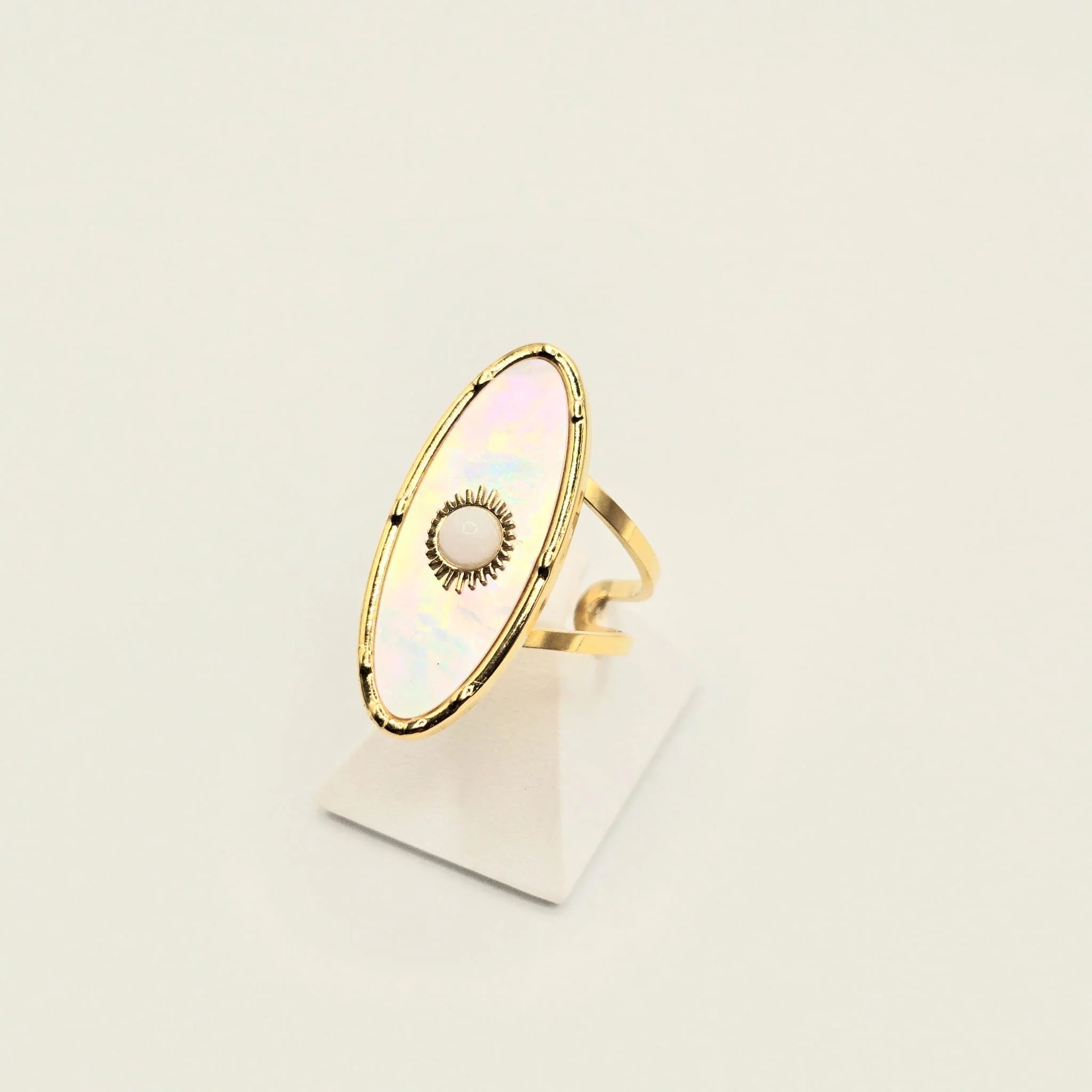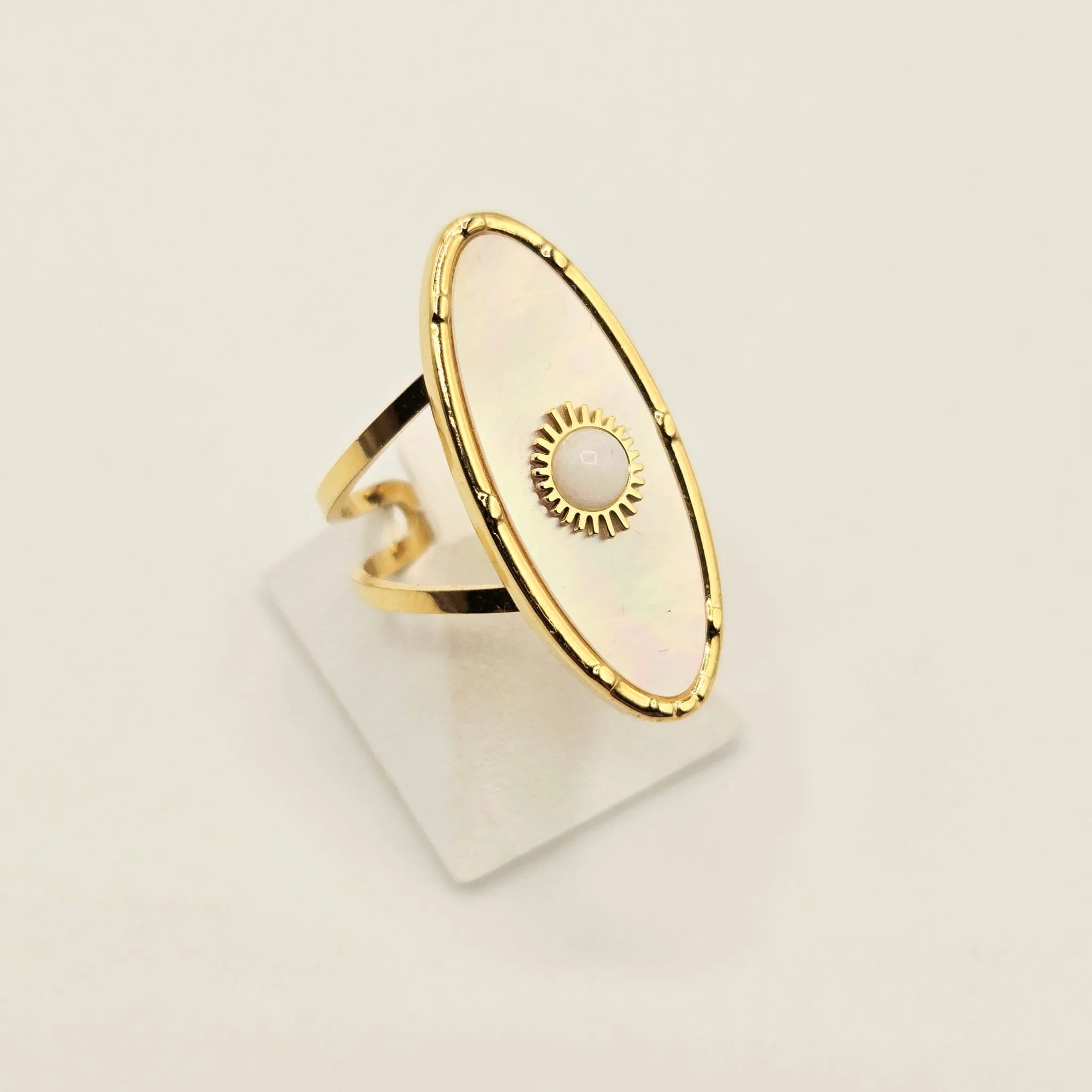 Bague Lunés en acier inoxydable, couleur or, résistante à l’oxydation, ajustable et hypoallergénique. Élégance durable et personnalisable. Jewerly collection.