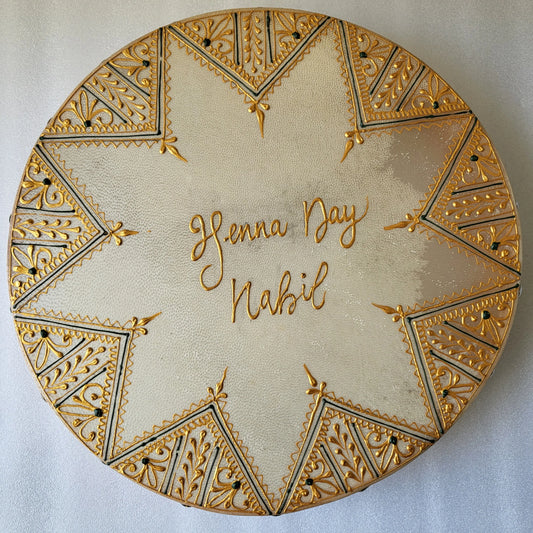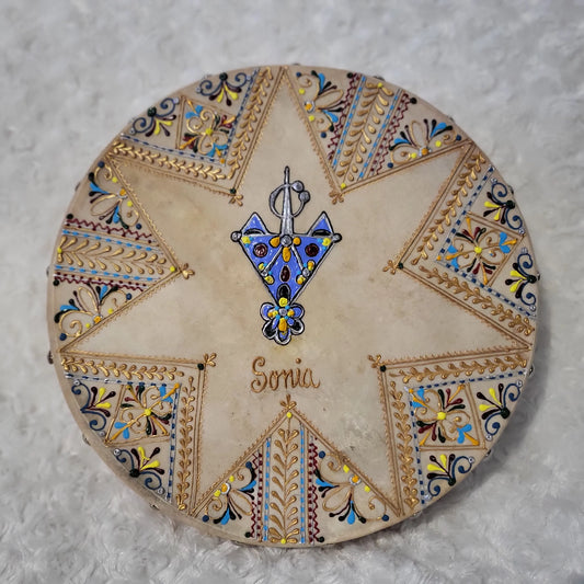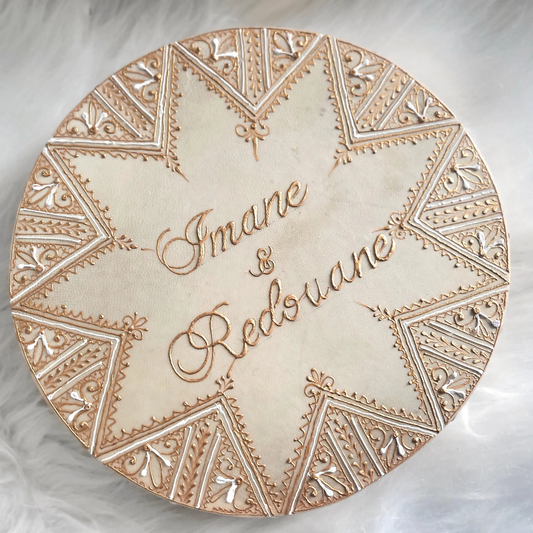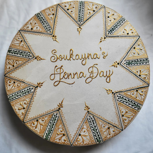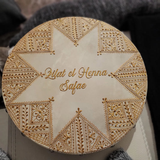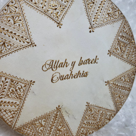 Notre bendir personnalisé est le choix parfait pour ajouter une touche d'authenticité et de raffinement à vos célébrations. Fabriqué artisanalement et personnalisé selon vos préférences, cet instrument traditionnel transformera vos moments spéciaux en souvenirs inoubliables. Commandez dès maintenant et découvrez la magie des fêtes orientales avec notre bendir unique.