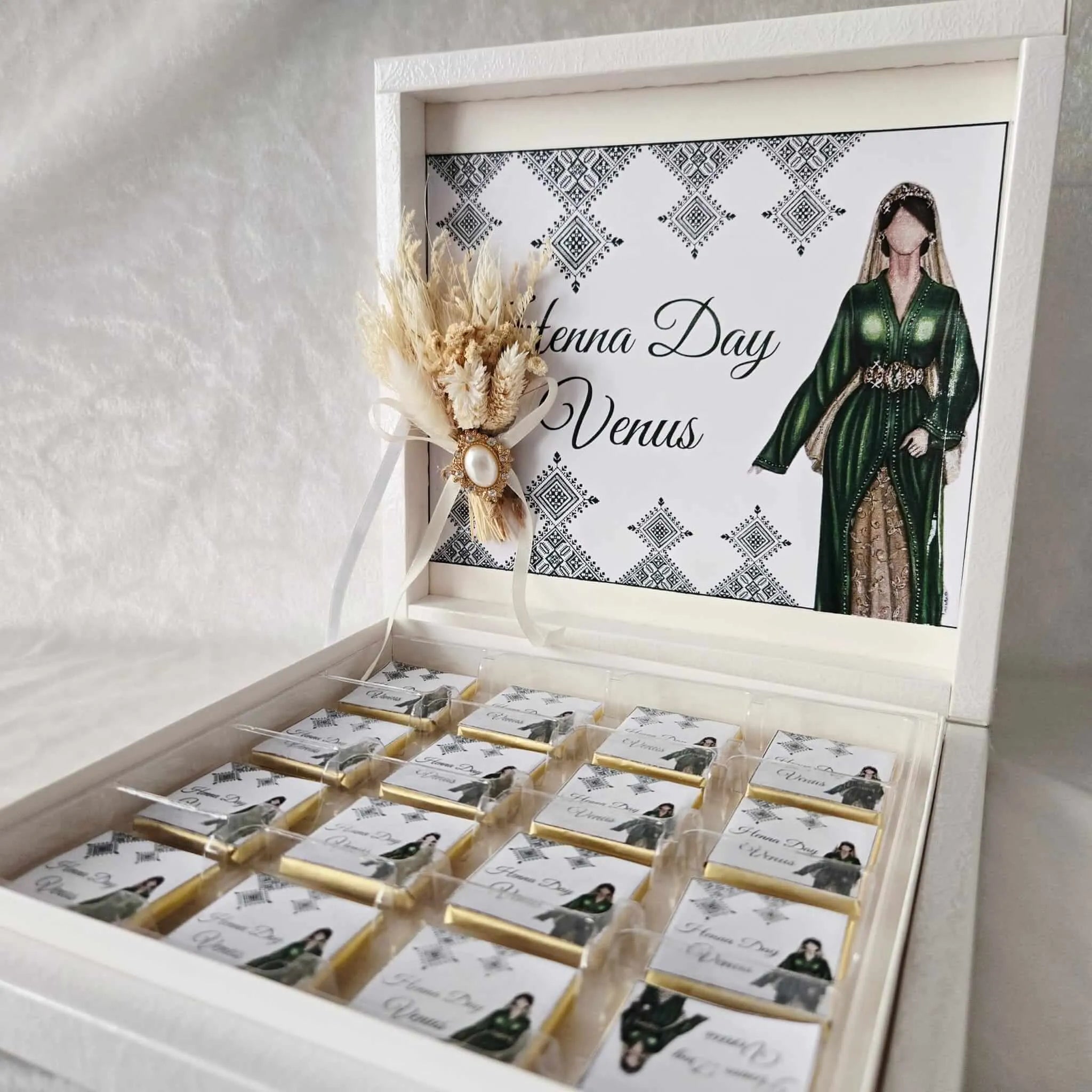 Parfaite comme cadeau invité cérémonie de henné, cette boîte trouve sa place lors de :