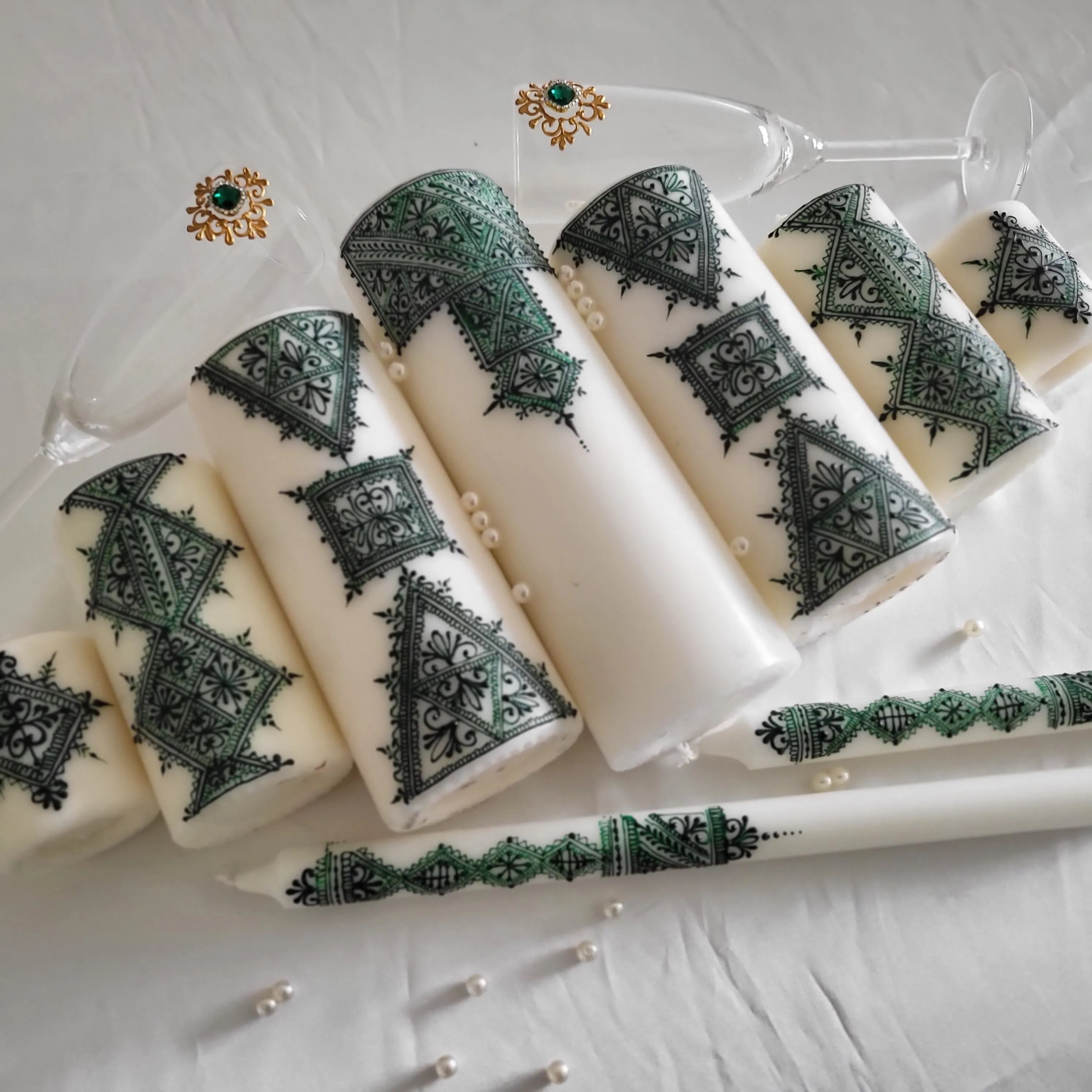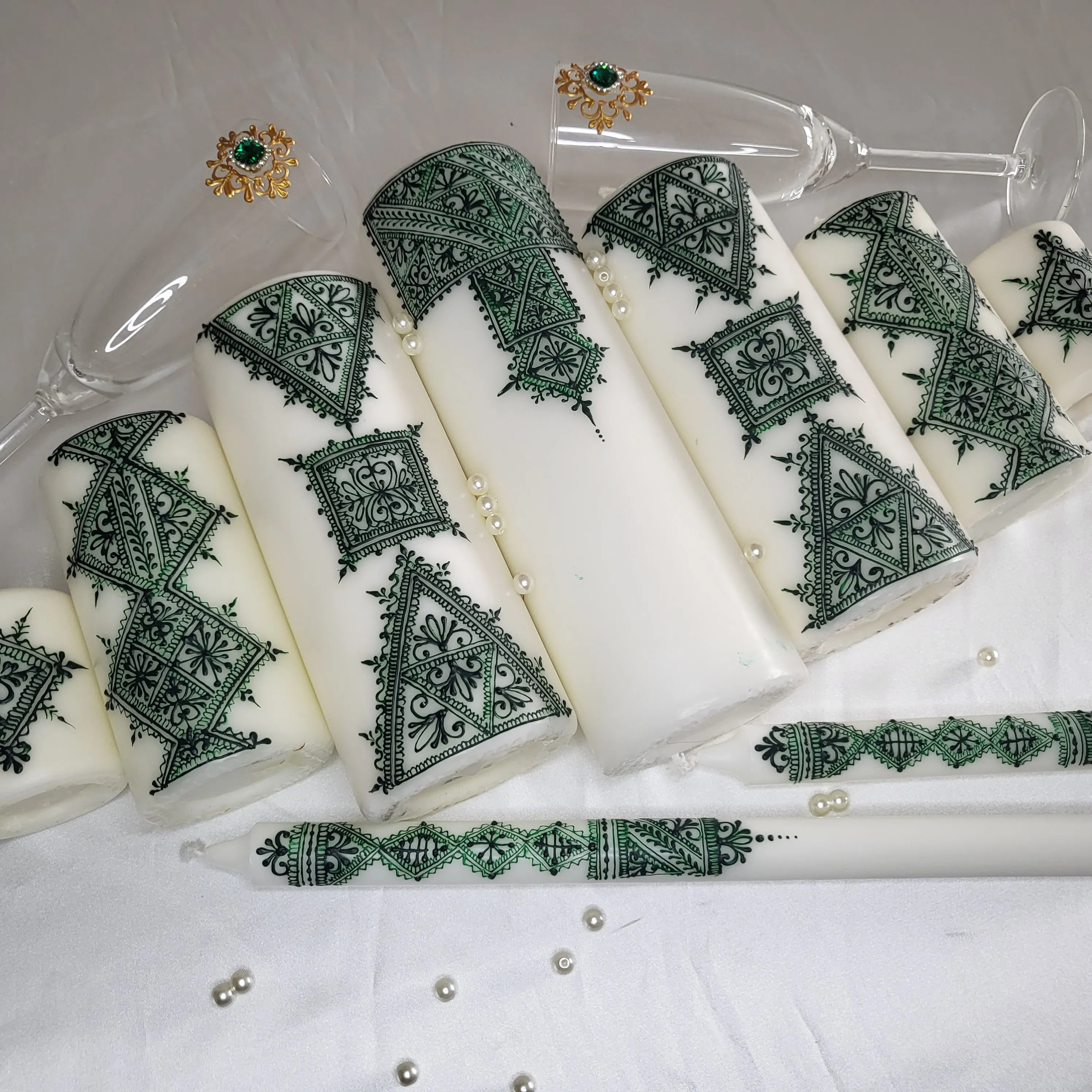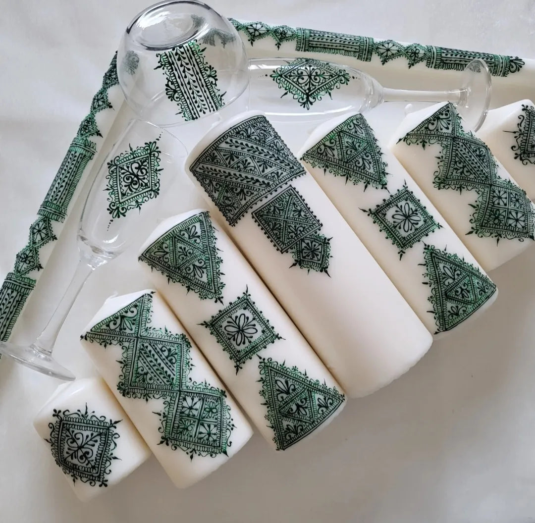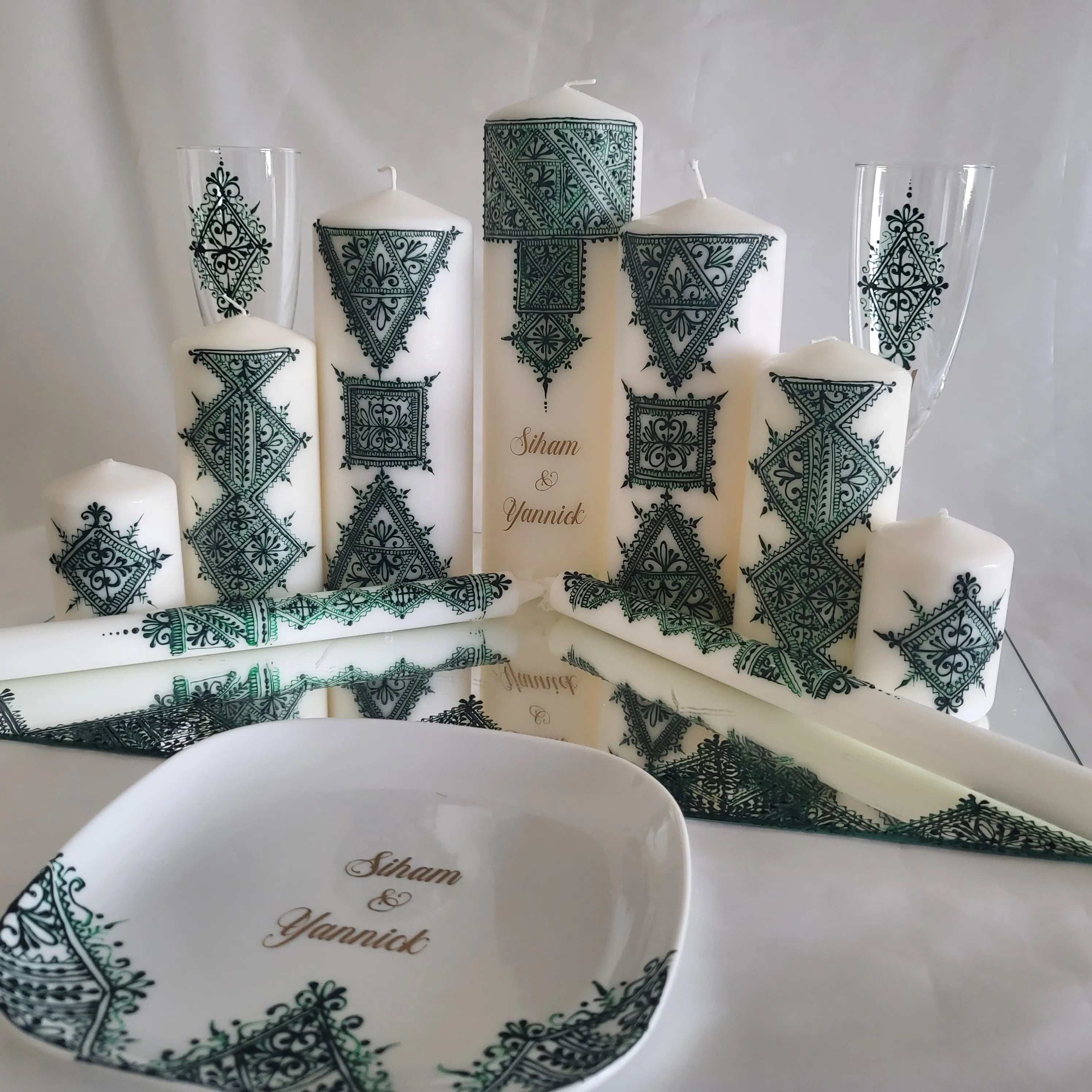 Selon certaine traditions maghrébine, le jour du henné est symbolique par différentes coutumes, lors de cette soirée elle est représentée par un assortiment de bougies posé en décoration sur la table d'honneur. Les deux prénoms des futurs mariés sont inscrits sur deux bougies. Les chandeliers sont allumés au henné de la mariée tout en étant accompagné de chants traditionnels et de musique orientale et/ou instrumentalisé.
