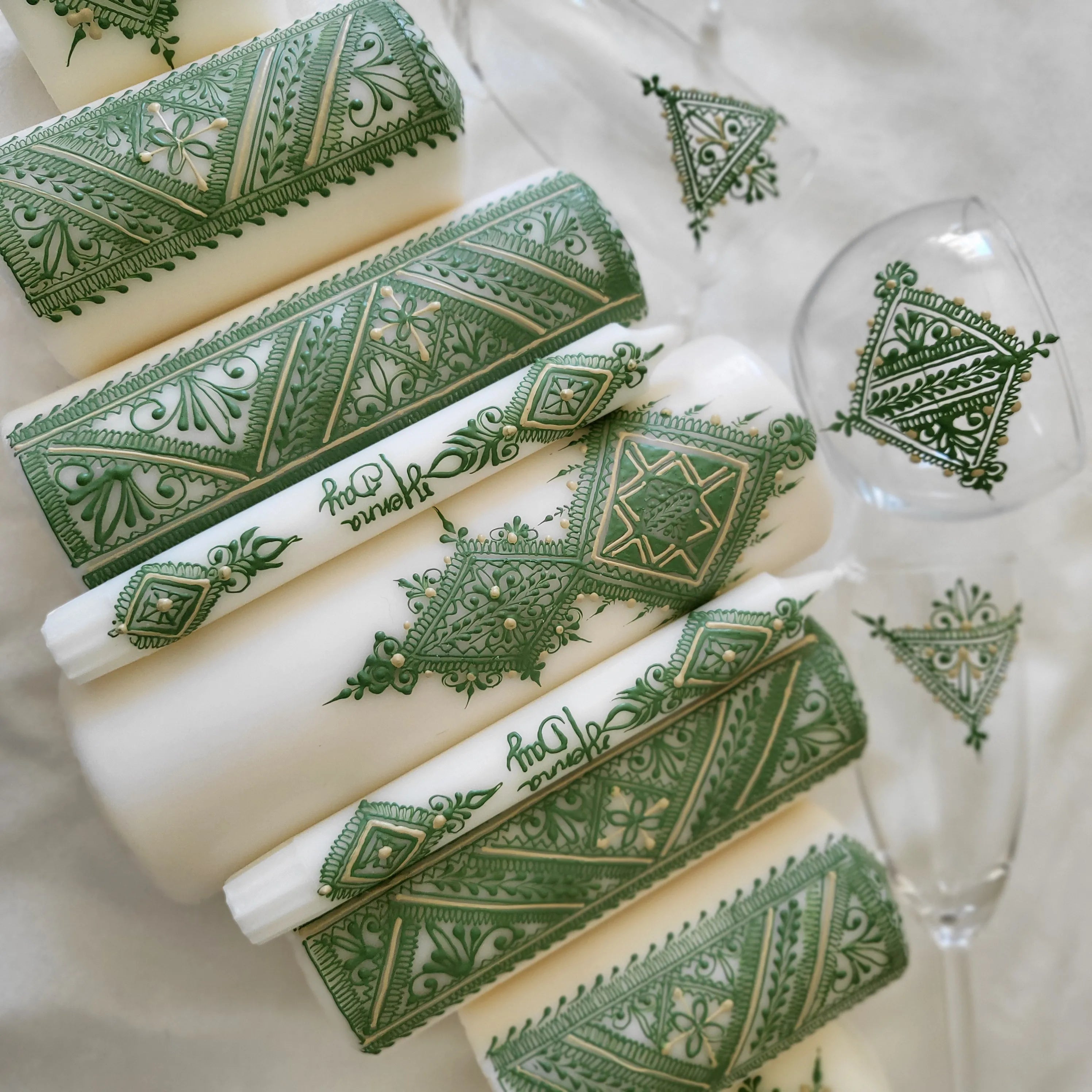 Selon certaine traditions maghrébine, le jour du henné est symbolique par différentes coutumes, lors de cette soirée elle est représentée par un assortiment de bougies posé en décoration sur la table d'honneur. Les deux prénoms des futurs mariés sont inscrits sur deux bougies. Les chandeliers sont allumés au henné de la mariée tout en étant accompagné de chants traditionnels et de musique orientale et/ou instrumentalisé.