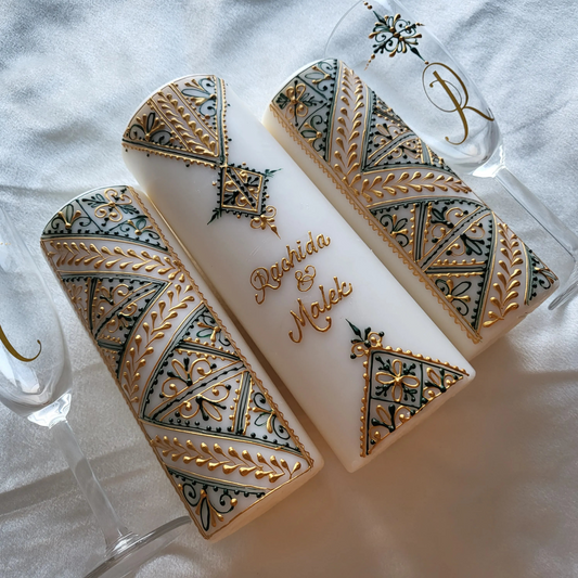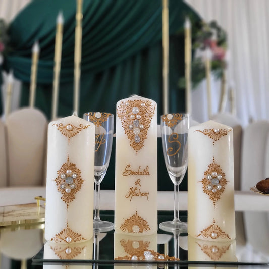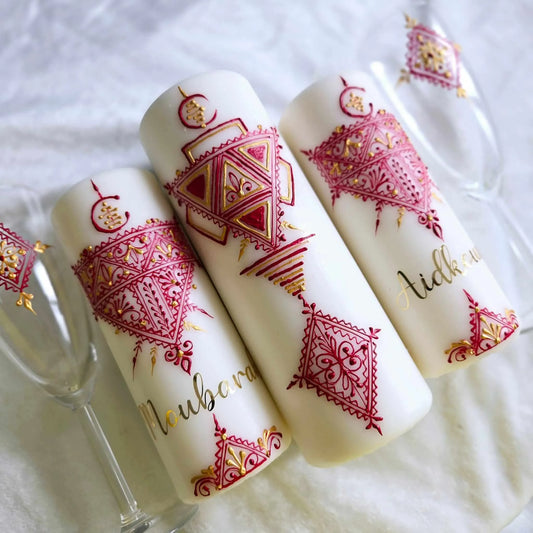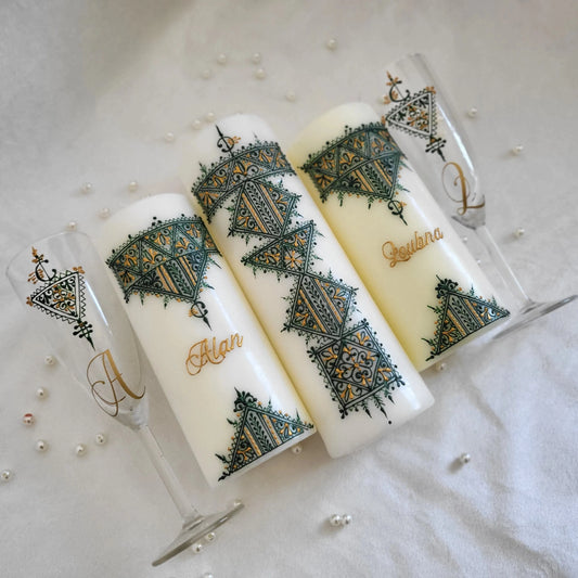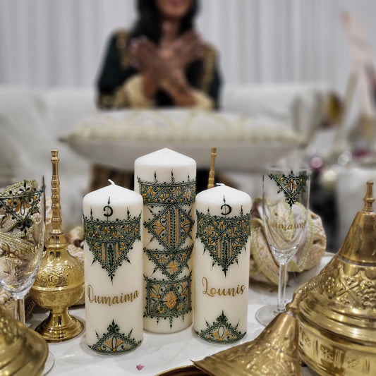 Ajoutez une touche de charme oriental à votre mariage avec notre coffret bougies de 5 pièces  personnalisées pour les mariages orientaux.