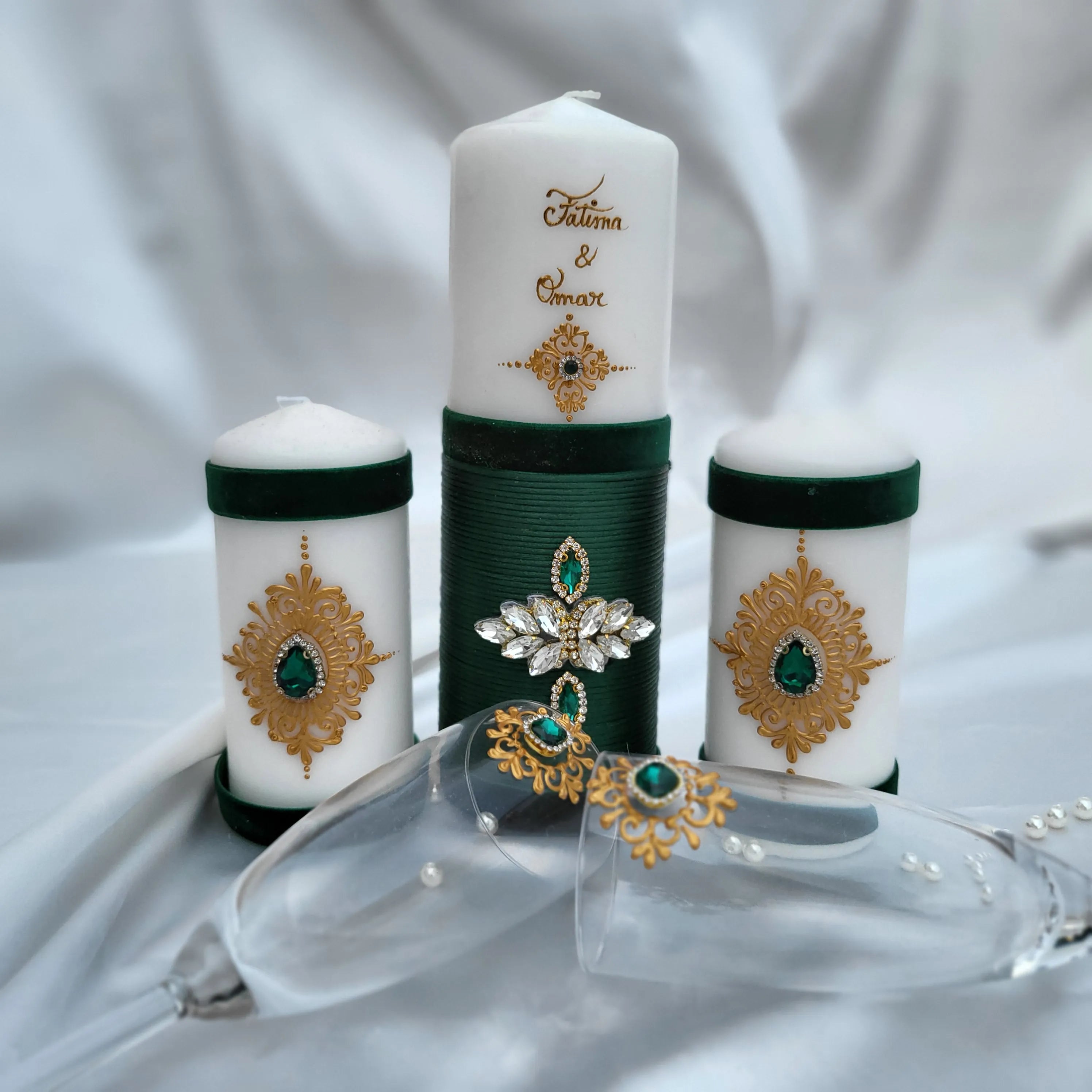 Selon certaine traditions maghrébine, le jour du henné est symbolique par différentes coutumes, lors de cette soirée elle est représentée par un assortiment de bougies posé en décoration sur la table d'honneur. Les deux prénoms des futurs mariés sont inscrits sur deux bougies et ou sur la bougie centrale au choix en commentaire.