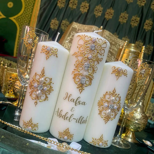 Nous proposons une large gamme de bougies pour créer l'ambiance parfaite pour votre cérémonie de mariage oriental.