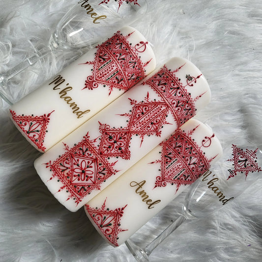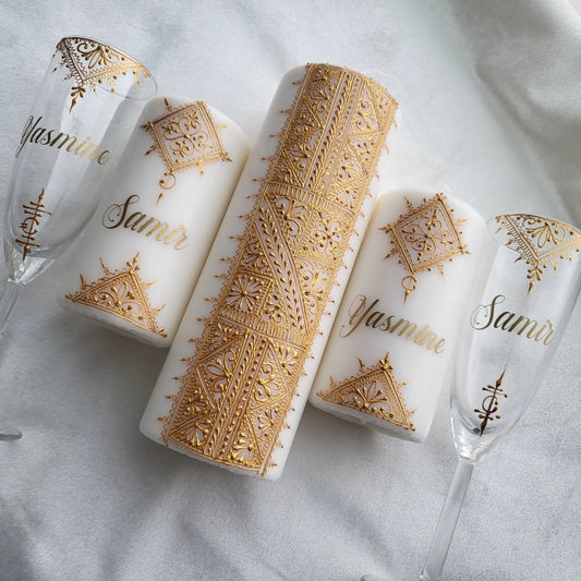 Ajoutez une touche de charme oriental à votre mariage avec notre coffret bougies de 5 pièces personnalisées pour les mariages orientaux.