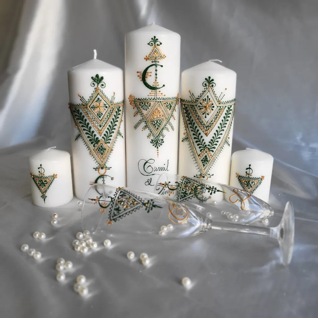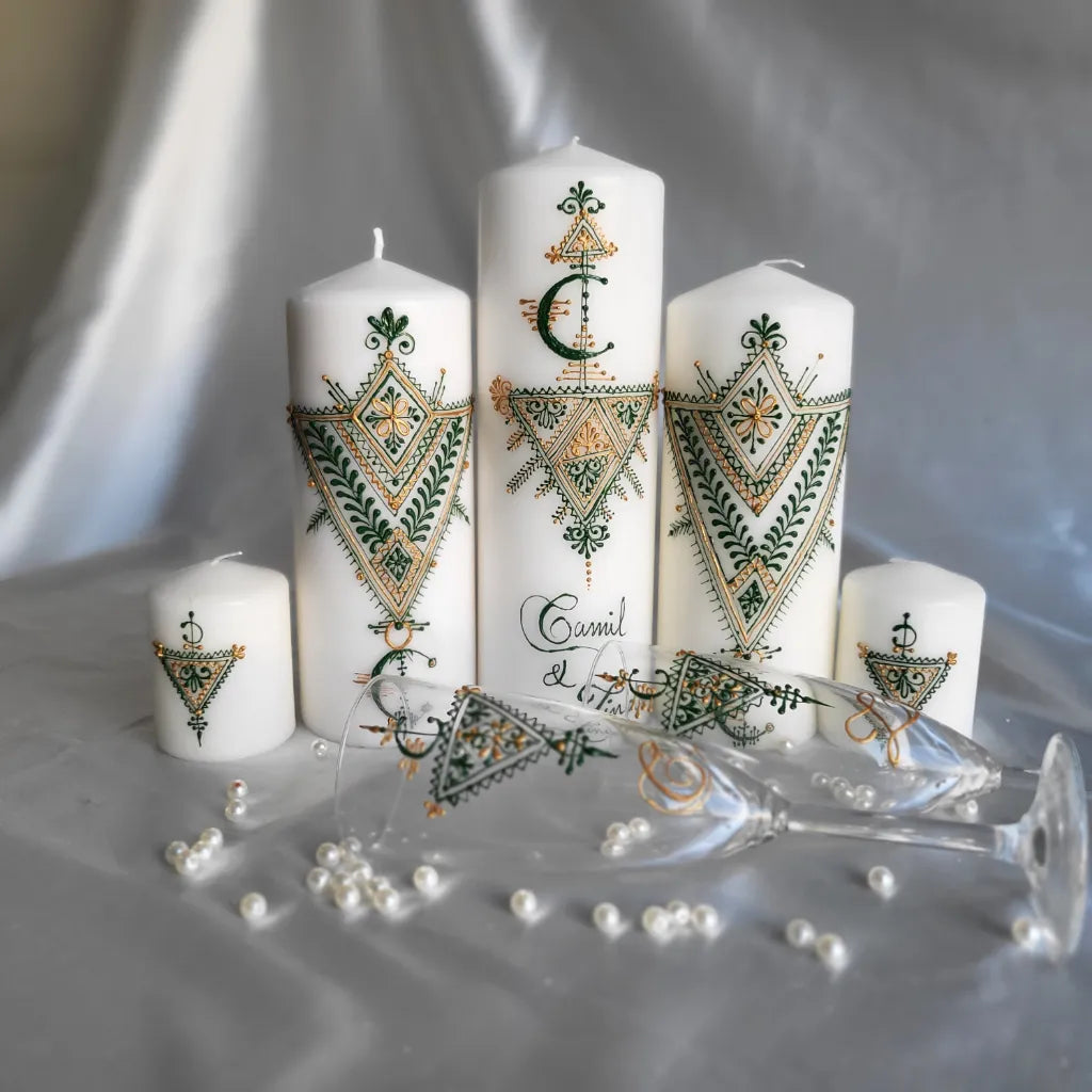 La soirée du henné, au cœur des traditions maghrébines, est une célébration où la symbolique des bougies est essentielle. Posées sur la table d’honneur, elles sont personnalisées avec les prénoms des mariés et allumées lors de rituels entourés de chants et de musiques orientales, ajoutant une touche spirituelle et festive.