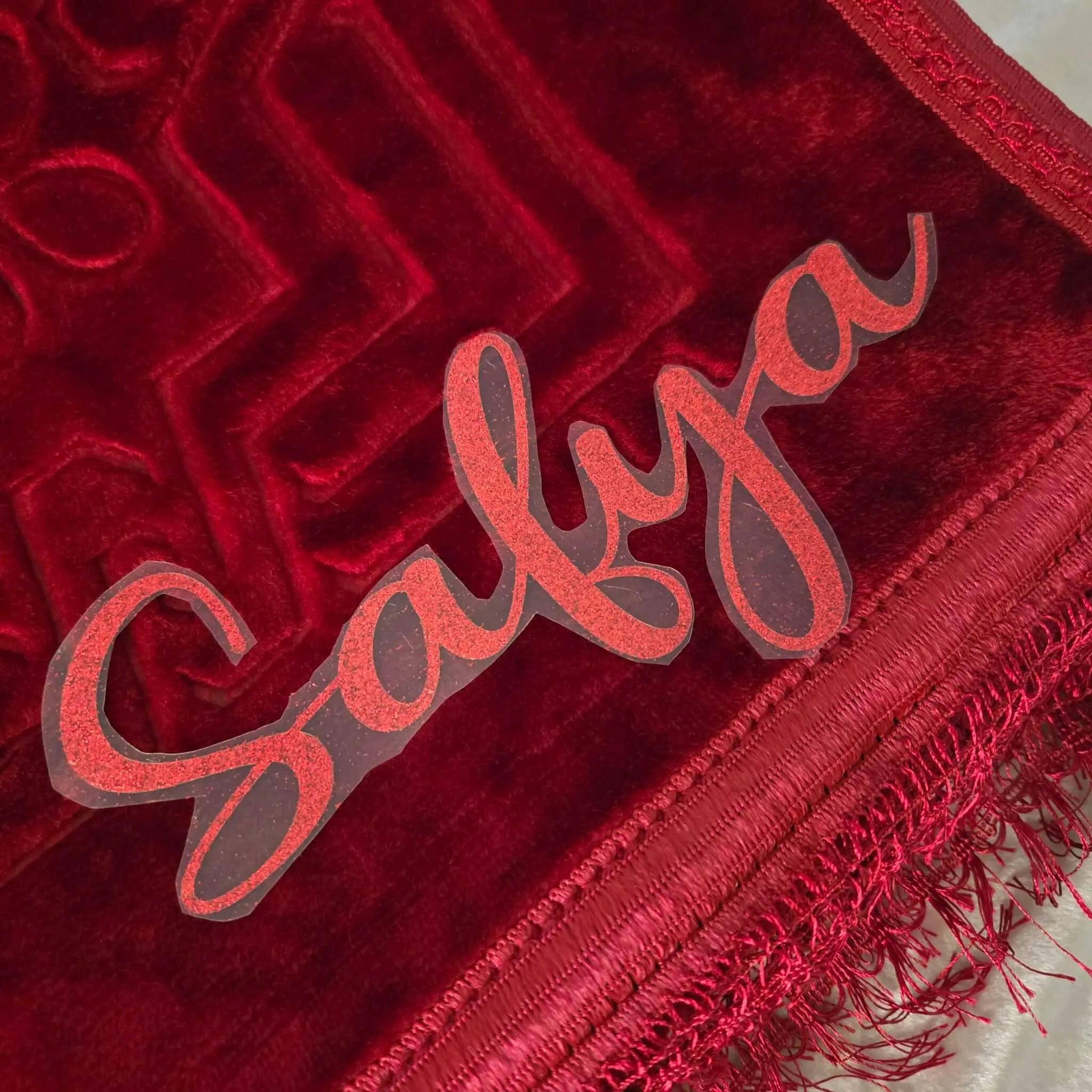 Technique : Flocage et calligraphie réalisées à la main, offrant une touche authentique et précieuse