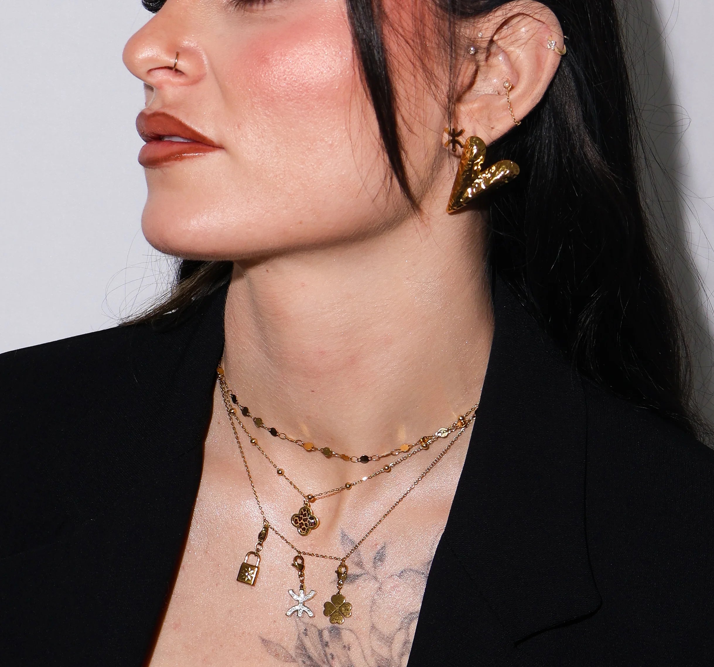 Ce bijou doré arbore un pendentif jaguar stylisé, symbole de confiance et de courage. Sa silhouette féline et sa finition soignée en font un accessoire statement idéal à porter seul ou en accumulation.