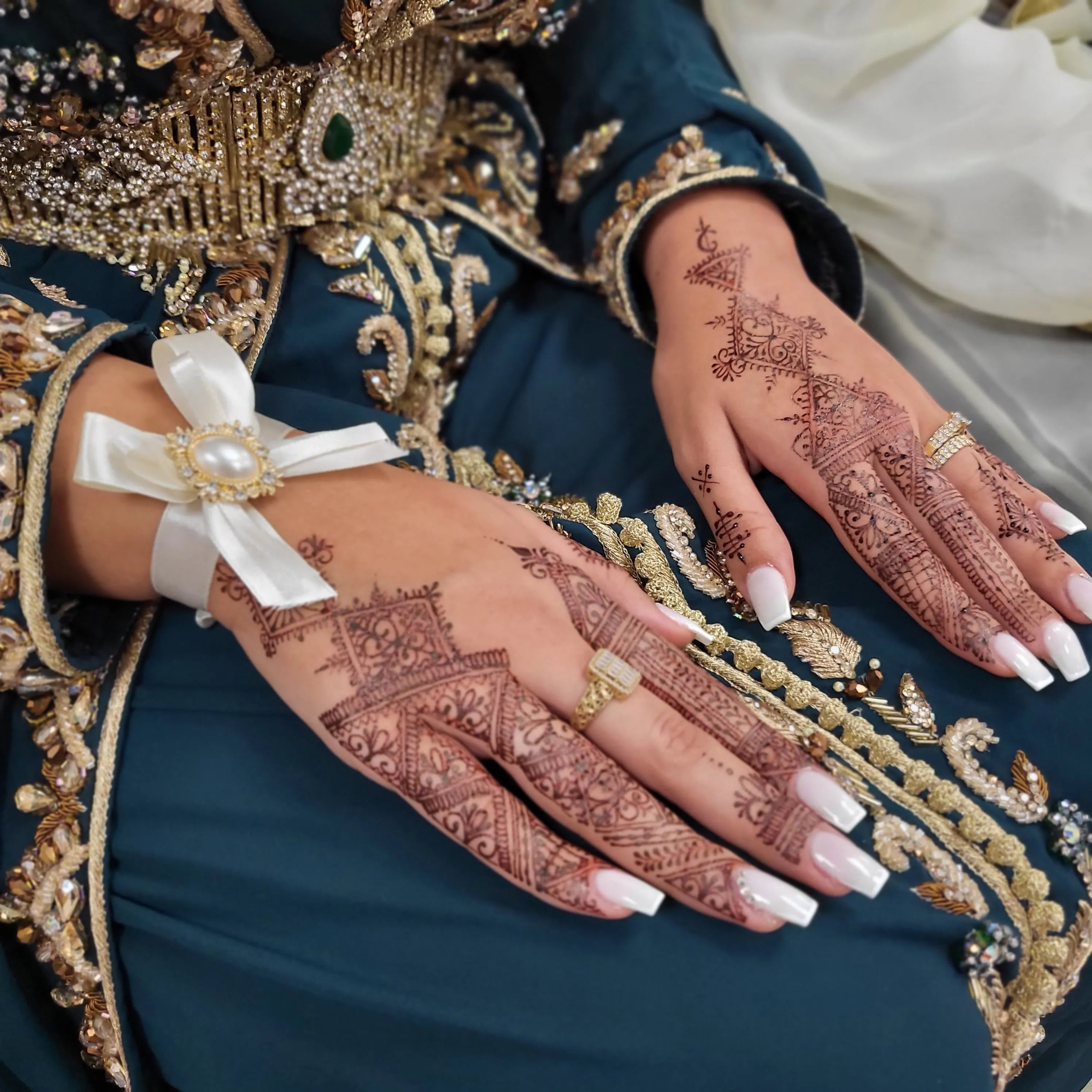 Des motifs élaborés seront également proposés. Ces dessins sont très minutieux et demande du temps pour sa réalisations avec beaucoup de détails. C'est pour cela qu'il est appelé ainsi. Ces dessins sont généralement représentés sous forme fessi et ou encore sous type de model mehendi ce type de prestation nécessité 1h-1h30 de réalisation sur deux mains extérieures