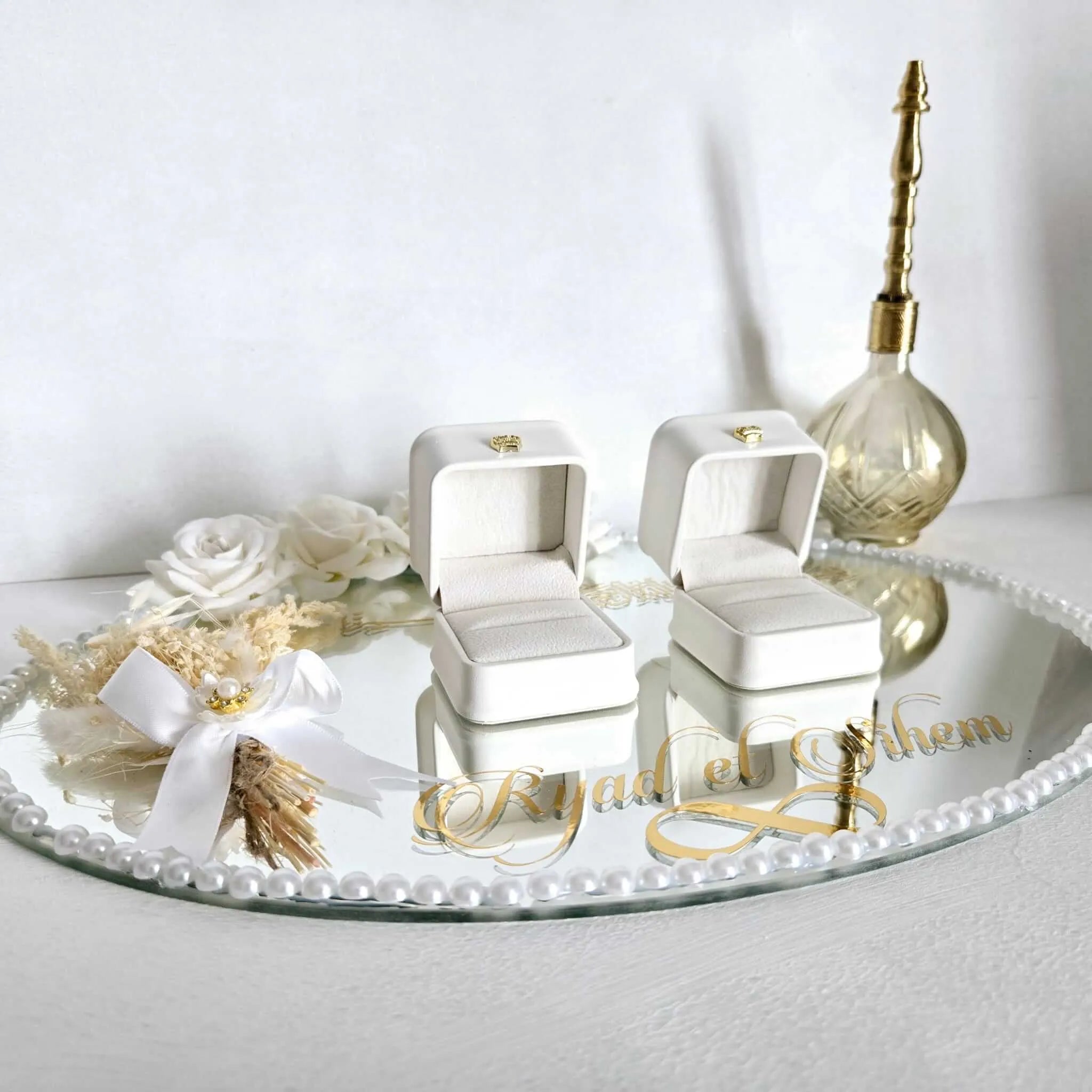 Que vous planifiiez un mariage traditionnel, moderne ou à thème, notre Plateau d'Alliance s'adapte à toutes les ambiances et sublimera le moment de l'échange des alliances.